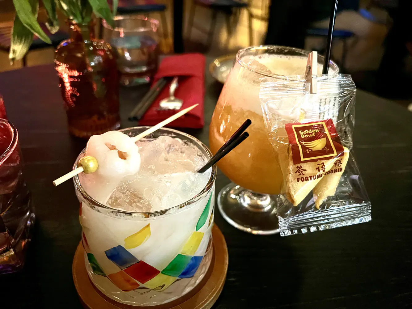 The Lychee Garden ($12 - left) came with fresh pressed lychee juice, aloe vera, pressed lime & agave mix, and topped with London essence peach soda. This tasted pretty natural, and it was very much a refreshing drink.