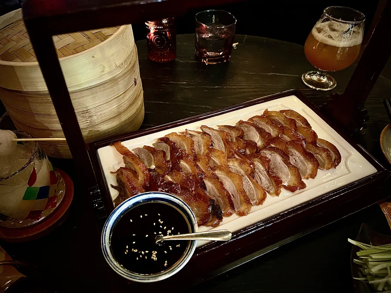 This was likely due to how fatty the duck (skin) was. When they took the duck off the stand, the fat literally dripped down. My guess is that they don’t actually hang the duck for long periods of time to let all the fat drain out. Instead, it’s absorbed into the skin, and when you bite into it, it just seeps with fat water.