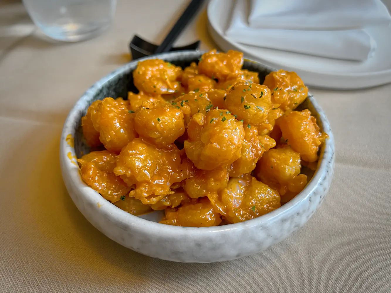 The Crispy Ma-la Rock Shrimp ($10) came with spicy aioli. This was just no-frills fried small shrimp with that typical crispy, starchy outside. The aioli wasn’t all that spicy and was very mild.