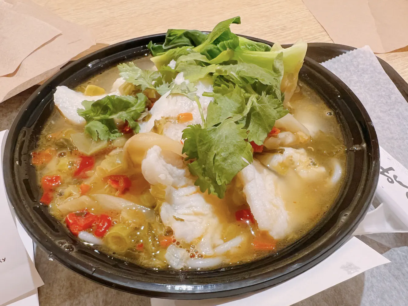 The Hot & Sour Fish Soup Noodle ($15.80) came with pickled peppers, braised fish fillets, and rice noodle. I ordered this mild spicy because the front cashier said that medium is very spicy. I will say that this wasn’t spicy at all, but if medium spicy was exponentially worse, then it could have been. Despite this being mild, it still had plenty of flavor in the broth. It reminds me a little of sour pickled mustard soaking in the broth. The fish fillets were very tender and pretty good albeit not much seasoning on them. The rice noodles were very delicate and pretty good, although slightly overcooked for me. Regardless, I thought this was pretty good overall.