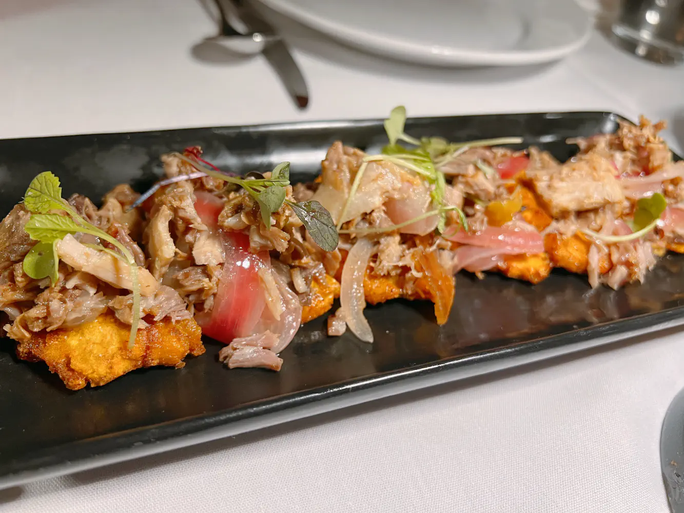 The Tostones Con Masitas De Puerco ($14) came with fried plantain topped with morsels of fresh pork. This was good, and it tasted like it sounds.