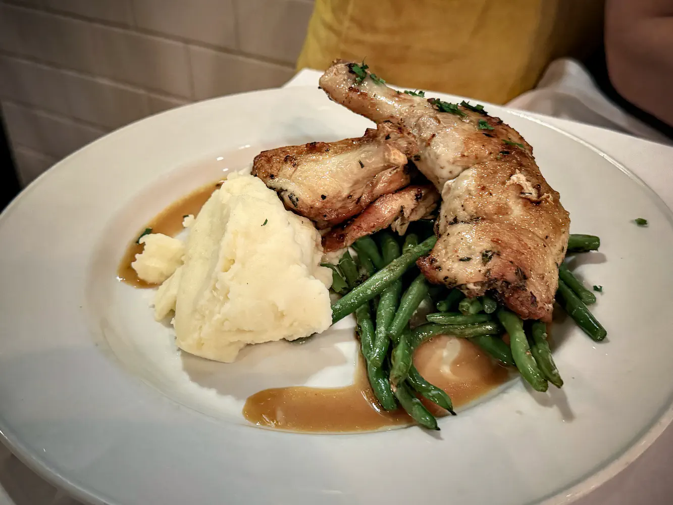 The ambiance felt like you were in a French bistro where the tables are close to each other and with a busty energy. My partner mentioned that this restaurant was previously Serafina, so they also mentioned that the decor didn’t change at all. They simply decided to pivot this restaurant into a French-type restaurant.