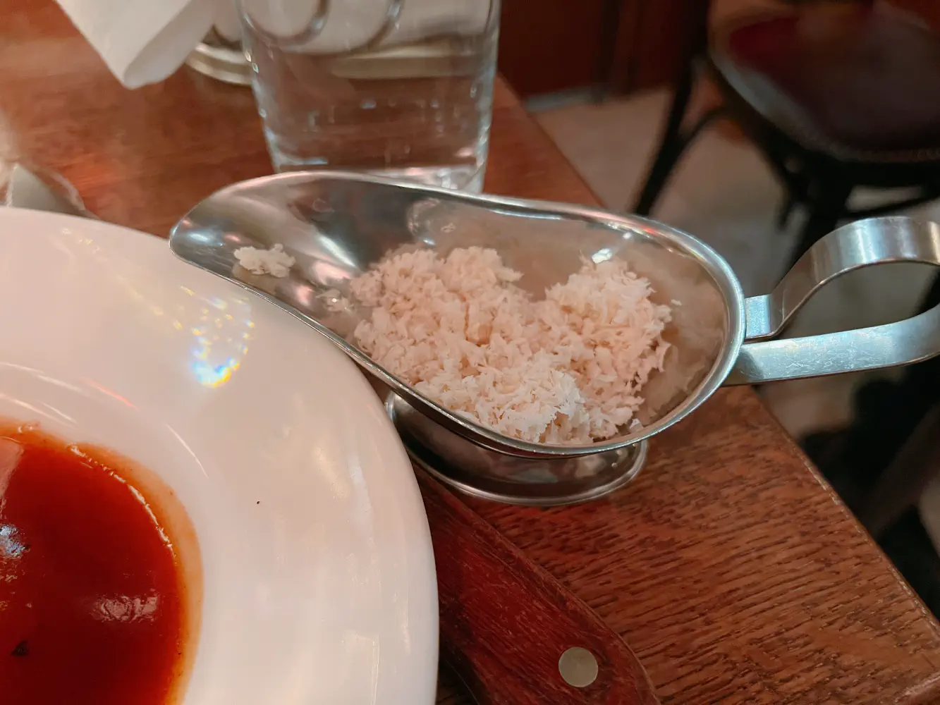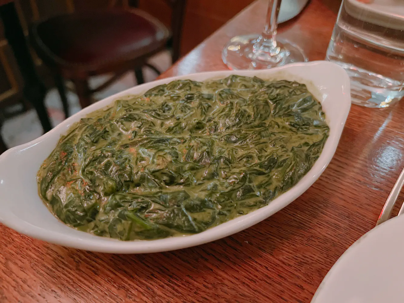 The épinards a la crème (cream of spinach) was ordered separately. This actually could have used a little more salt, and I’m not even a salty eater. I only was able to eat a few small bites before being full from the roast beef. The day after was quite pleasant with a dab of salt.