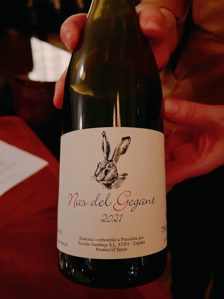 The glass of Joan Ramon Escoda Nas del Gegant 2021 ($20) came from the region of Conca de Barberà in Catalunya, Spain. It was a medium body with fruit forward flavors and had a subtle taste of acidity and pepper. It was very pleasant and compatible with everything we had tonight.
