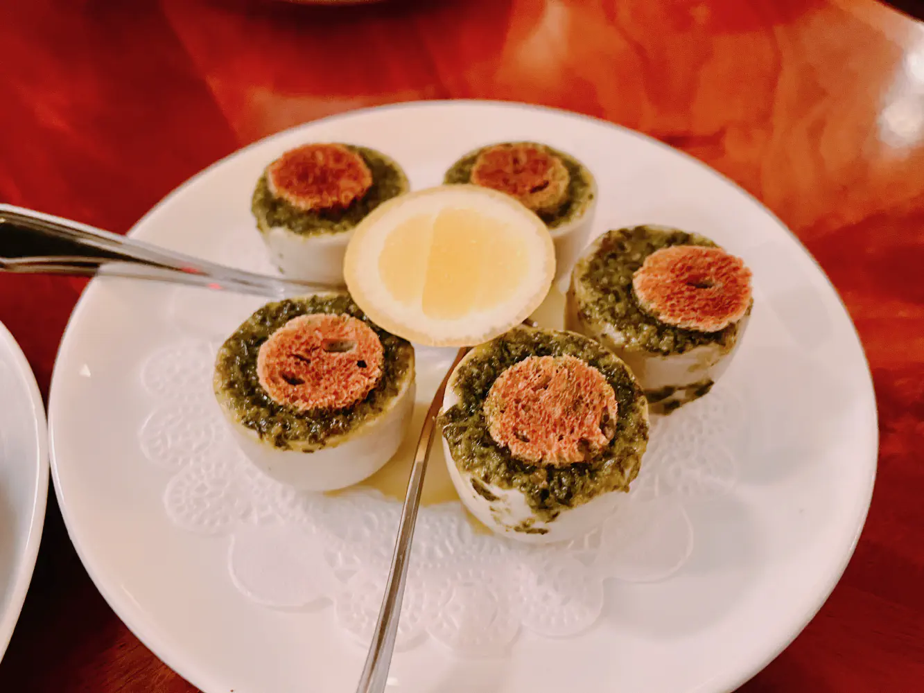 The Escargots Bourguignons ($26) came with 5 pieces in their own little mini porcelain vats with a little lemon slice to squeeze into each vat. There was plenty of herbs, butter, and seasoning. It’s a shame they didn’t give us bread, nor were we interested in paying for it. Regardless, the escargots were tender and pretty good, albeit small. I think the little circular disks that sat on top was some toasted cheese (parmesan?). Value wise, this probably wasn’t really worth it, but it was definitely very flavorful.