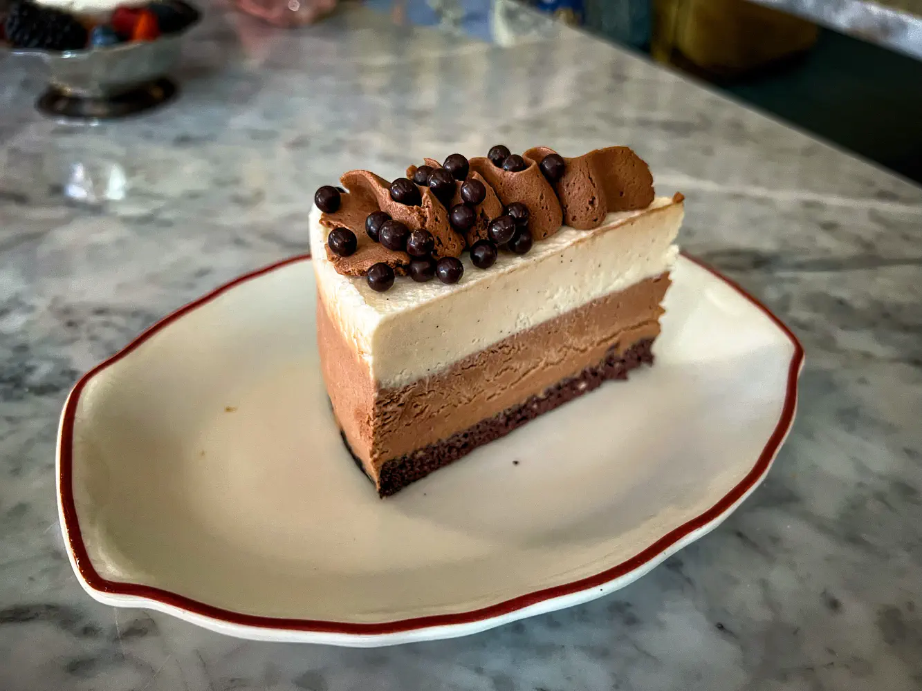 Separately, I also ordered the Chef’s Dessert ($15) as a supplement. It was basically an ice cream cake. The brown part reminded me of a light chocolate with salt in it. The texture wasn’t strictly like ice cream, but it was tasty.