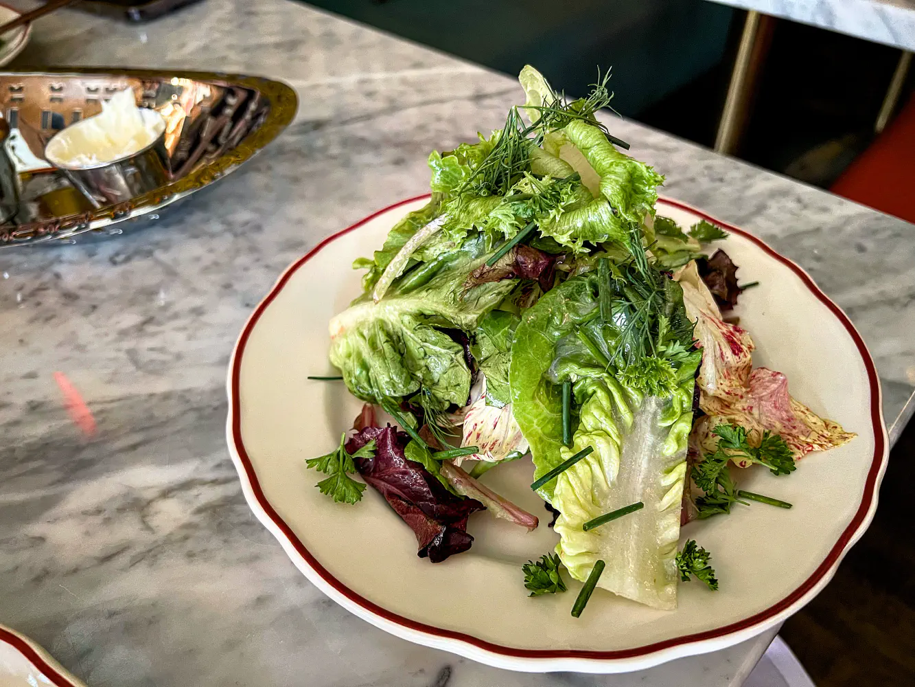 For Appetizer, they gave Salade Verte, which was seasonal greens, chicory, fines herbs, and Champagne vinaigrette. The greens were very fresh and crispy, and luckily the dressing was not overpowering.