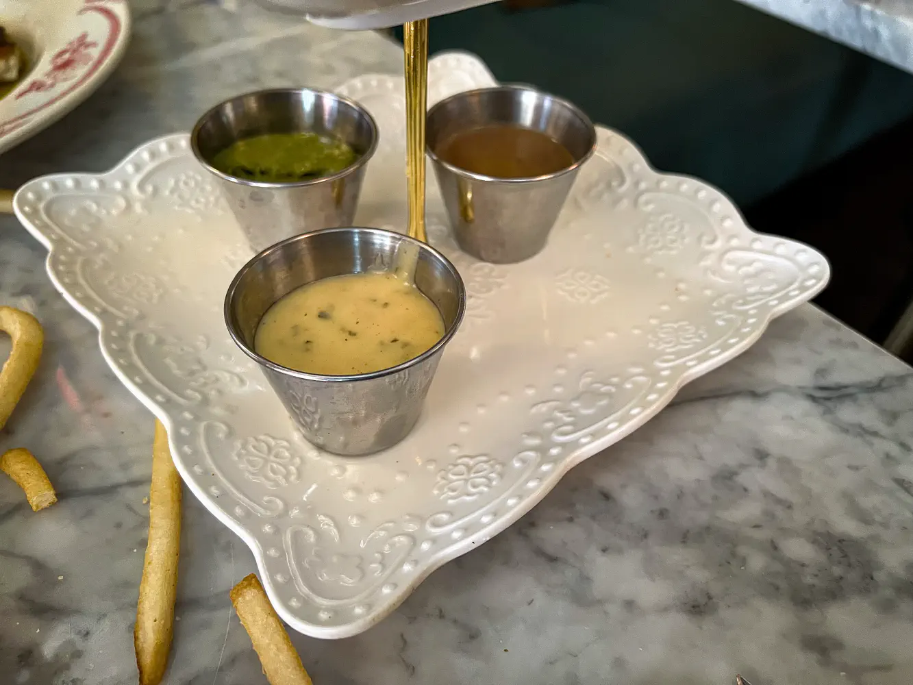 - Mornay sauce - this tasted like a cheese sauce that was rich and creamy. I did not really enjoy this because there wasn’t enough contrast to the potato and saltiness of the fries.