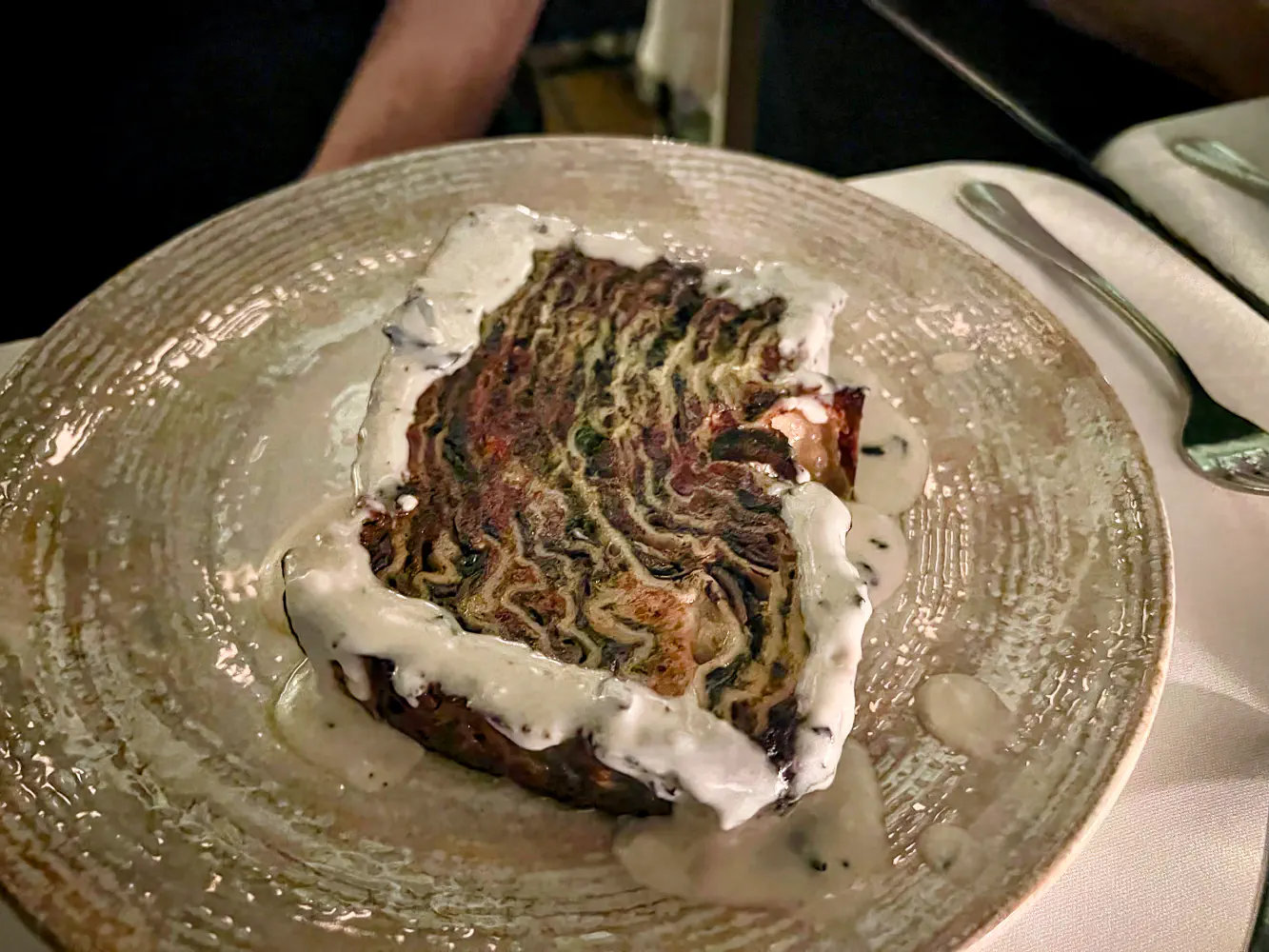 The Mushroom Lasagna ($31) came with spinach, porcini, bechamel, and taleggio fonduta. My partner enjoyed this, and this was my gift to them. They love lasagna and mushrooms, and they seldom have them combined together. This was slightly salty, but it had that earthy flavor that mushroom lovers tend to enjoy.