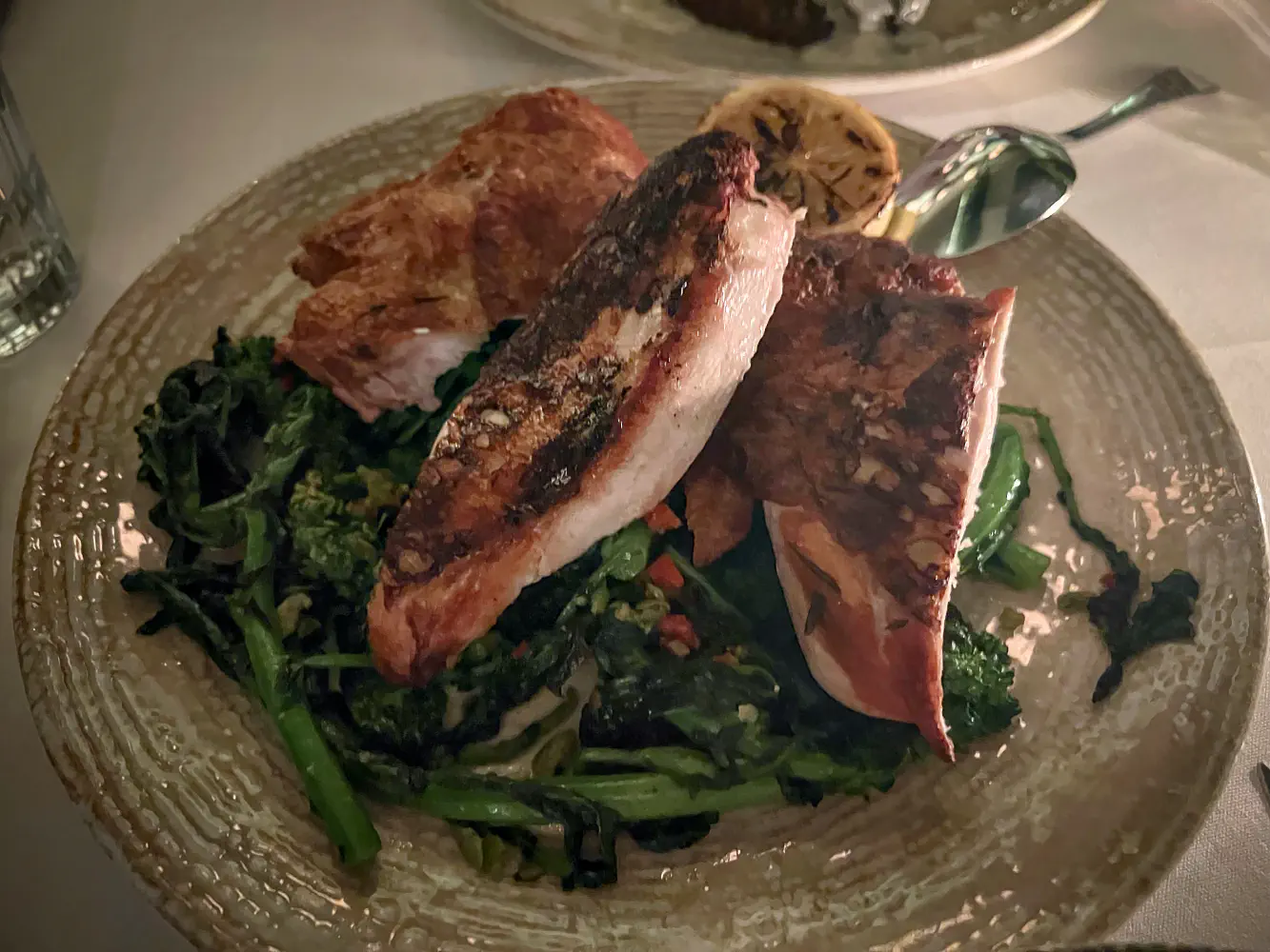 The Brick-Pressed Local Chicken ($38) came with charred broccoli rabe, castelvetrano olive and pepper, and lemon. The chicken was quite juicy and plentiful for the value. They surprisingly gave a lot of broccoli rabe, which the chicken sat on top of. The chicken was a bit heavy on the salt, so they could’ve seasoned it less. Nonetheless, the skin was crispy, and overall, the course was good for the price.