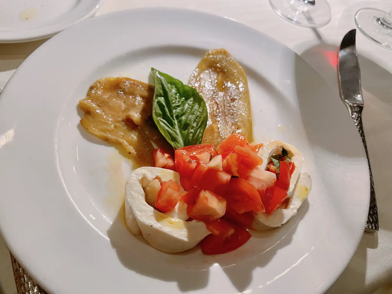 The Mozzarella Farcita Dello Chef was a homemade fresh mozzarella cheese stuffed with roasted peppers and marinated egg plant. It was served with fresh tomatoes and basil. The cheese was actually pretty good, but I didn’t care for the stuffed nature of it. The ingredients tasted fresh, but they did not leave a lasting memory.