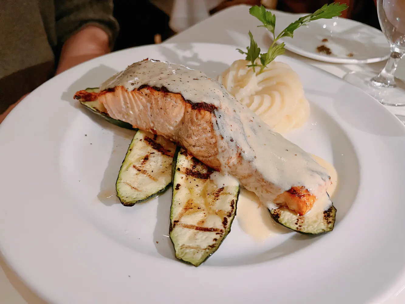 The Trancio di Salmone alla Griglia was grilled fillet of salmon with grilled zucchini and mustard sauce. My partner thought the salmon was very oily and fatty, and the rest of the ingredients were acceptable.