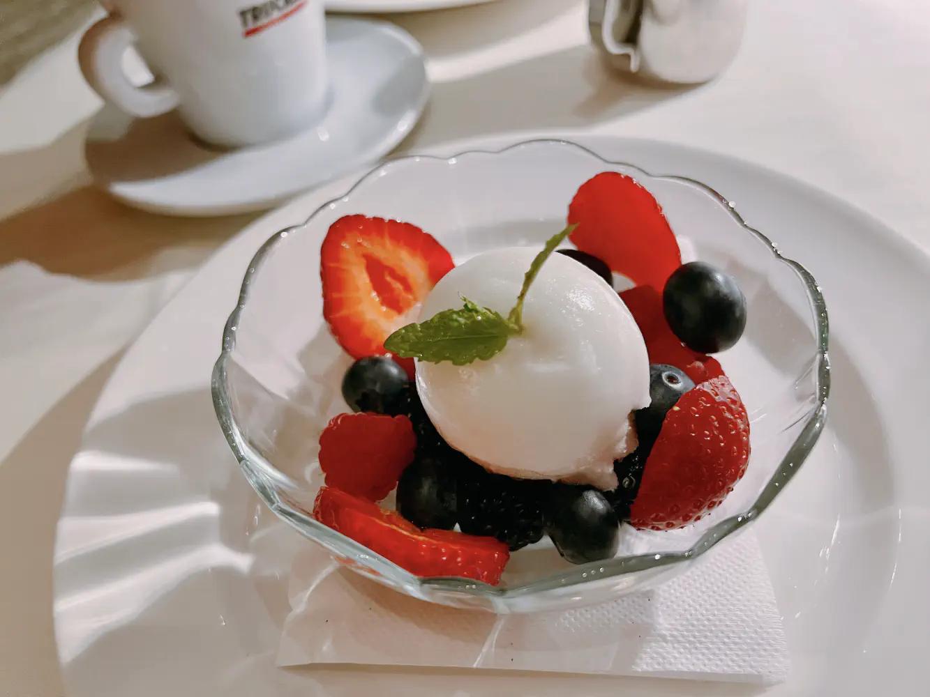 The Frutti di Bosco con Sorbetto al Limone was mixed berries with lemon sorbet. This really wasn’t anything special, but at least the fruits were good.