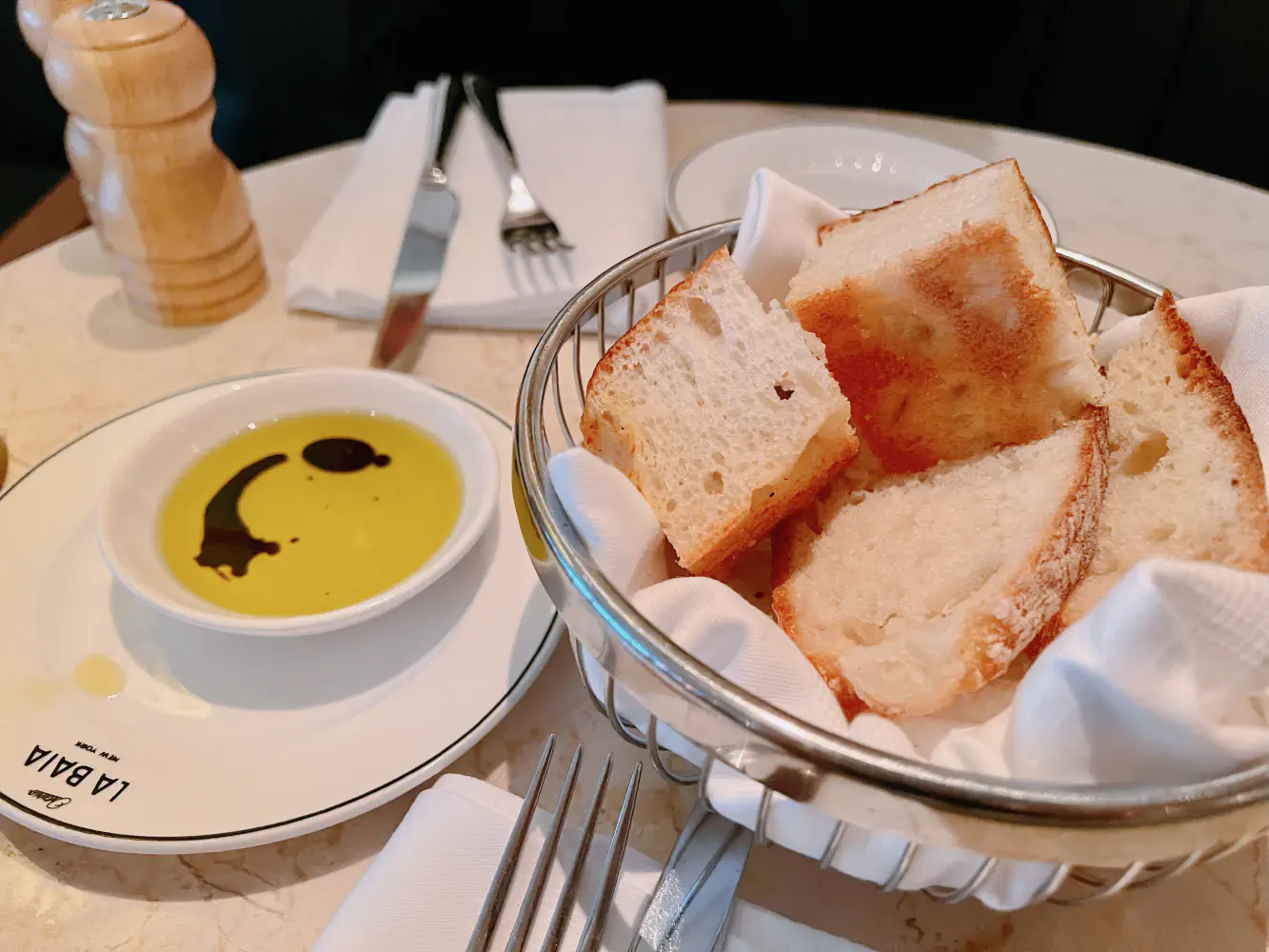 What’s an Italian restaurant in Midtown that didn’t require reservations at 6 PM on a Friday evening after work? This one. It’s very close to the Rockafeller area, right across the street from a food hall. There’s a small car with a ton of flowers coming out of it. You can’t really miss it. We were able to walk in pretty easily, and we were seated towards the front. Because this restaurant is not exactly super popular, the attention and seating was quite comfortable.