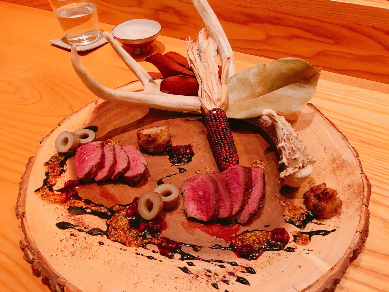 The venison was a nice medium rare and somewhat bloody. The sauce underneath was a nice complement to it. I recall it having a slight vinagrette like taste to it.
