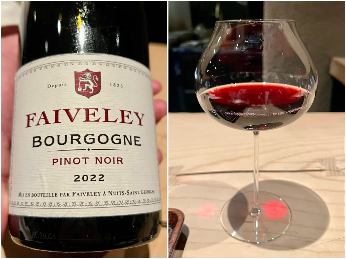 The Pinot Noir ($28) came from Joseph Faiveley, Bourgogne, France 2022. This has a balanced texture with round tannins and red fruit forward flavors.