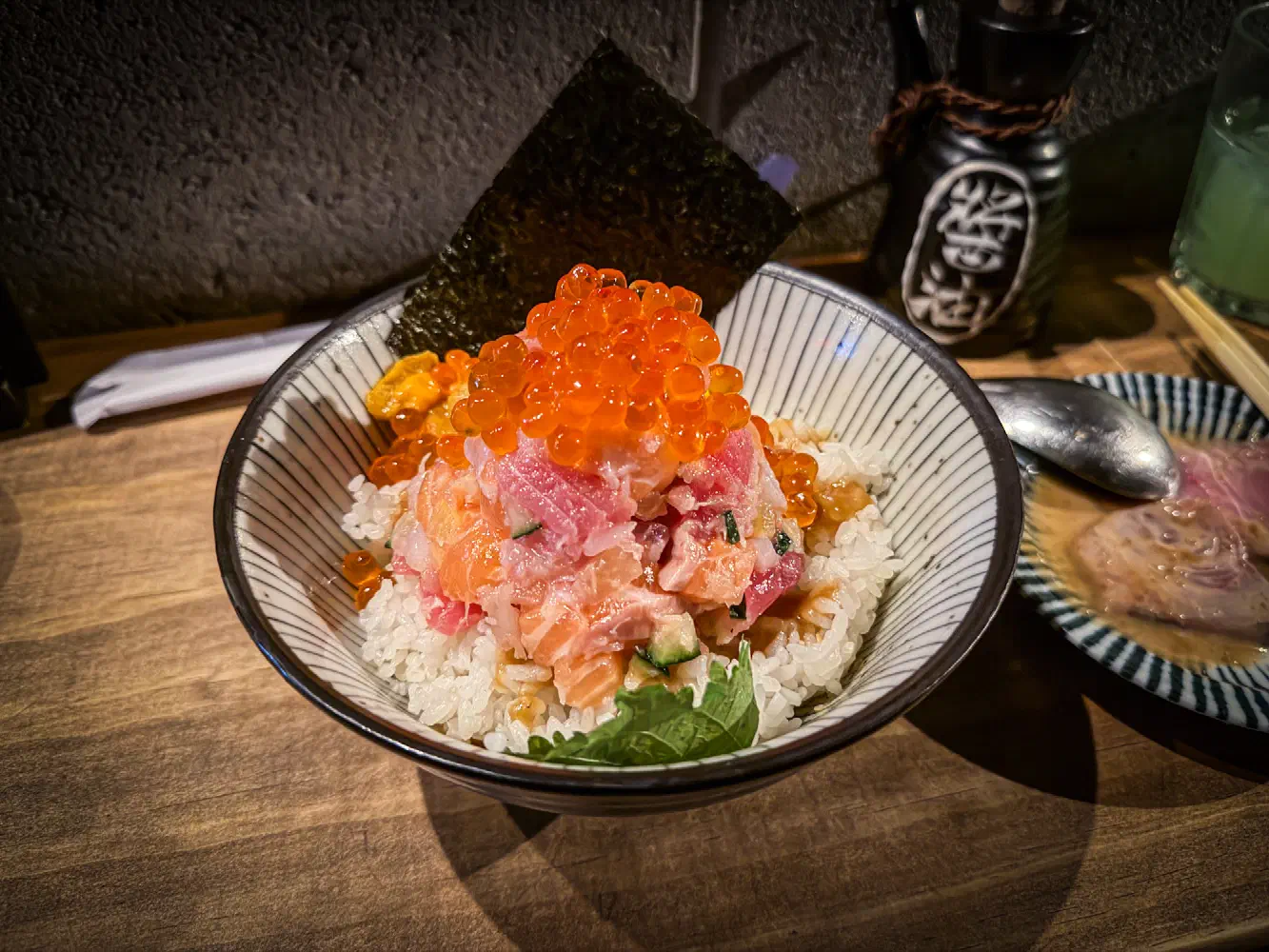 One interesting thing to this bowl is halfway through your bowl, you can ask them to pour hot soup into it to allow you to finish the rest. This soup reminded me of a strongly flavored miso soup. The miso soup was good and salty in flavor. My partner really enjoyed this even though they previously mentioned they disliked miso. The hot miso soup will cook some of the fish, where it does start to get a little bit rubbery. I honestly don’t think the miso soup is needed, but if you really want to have a porridge-style finish, that’s OK too. I could’ve easily finished the kaisen don bowl without any miso soup if I wanted.