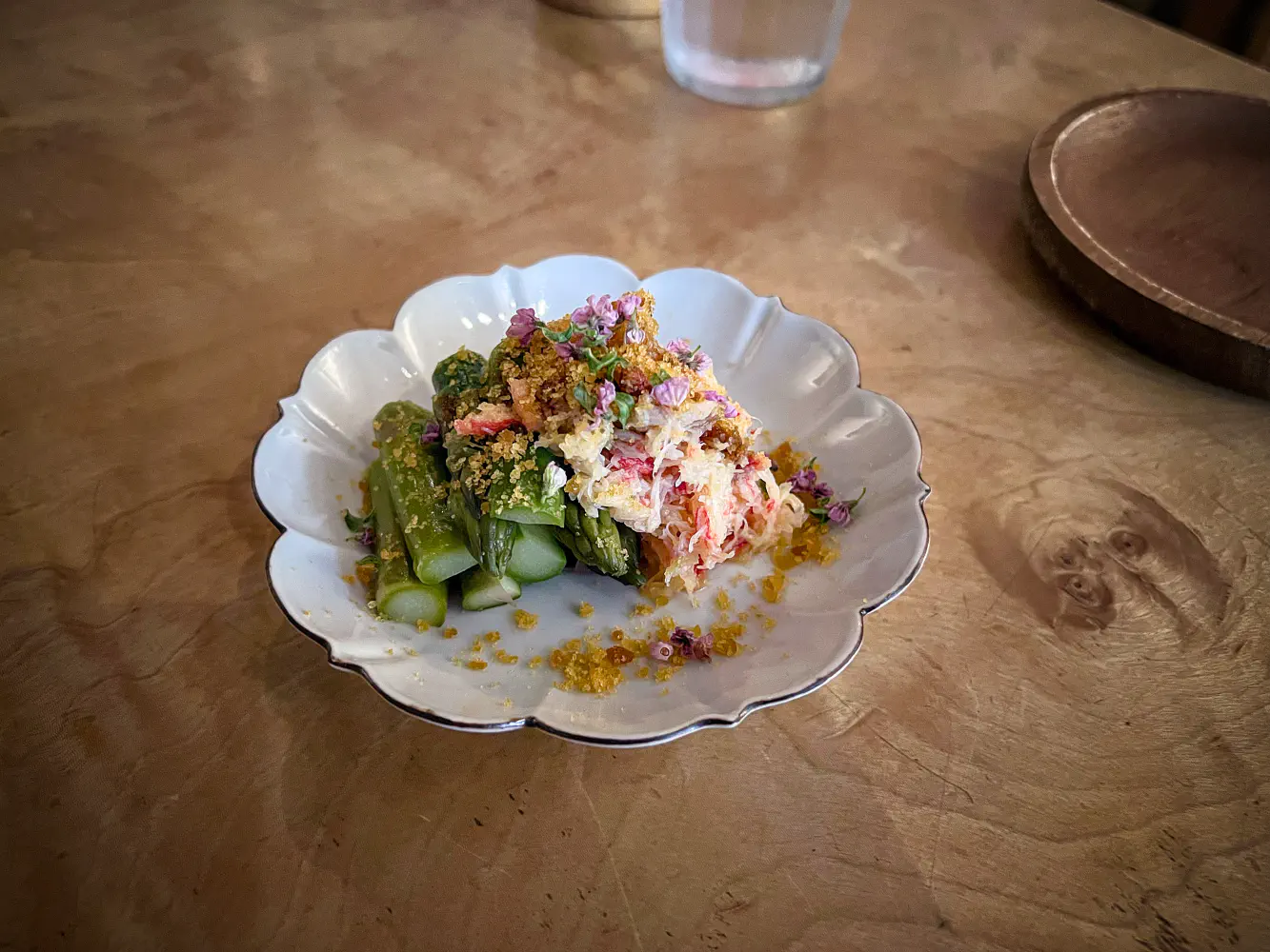 The Snow Crab and Asparagus, Shaved Karasumi ($22) came with olive oil and balsamic soy reduction. Karasumi is a Japanese delicacy of dried, salted mullet roe. With this on top, the snow crab was sweet and slightly salty leaning. It was juicy, though to share with more than 2 people would probably be somewhat difficult. The asparagus was crispy and fresh, but it is just asparagus.