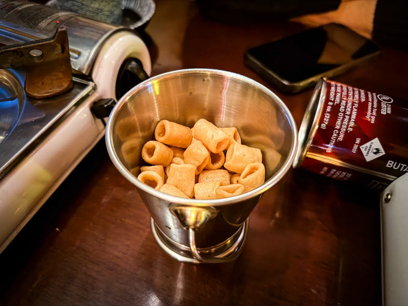 They gave us these crunchy snacks, which reminded me of fluffy crispy flour snacks.