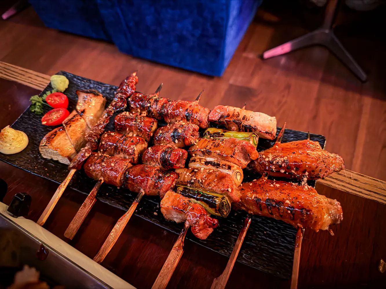 The Assorted Skewers ($24) came with mushrooms, mushroom wrapped meat, tomato wrapped meat, pork belly, and chicken wings. This was room temperature and glazed with sauce. My partner mentioned they found the seasoning to be nonexistent, but I thought it was fine. It was definitely on the sweet side.