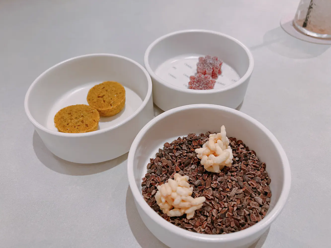 - Rice Popcorn - I don’t remember this too clearly other than it was similar to lightly, sweetened, crispy rice clusters. The brown dirt is basically unsweetened cacao nibs that I learned later you weren’t supposed to eat. Oops!