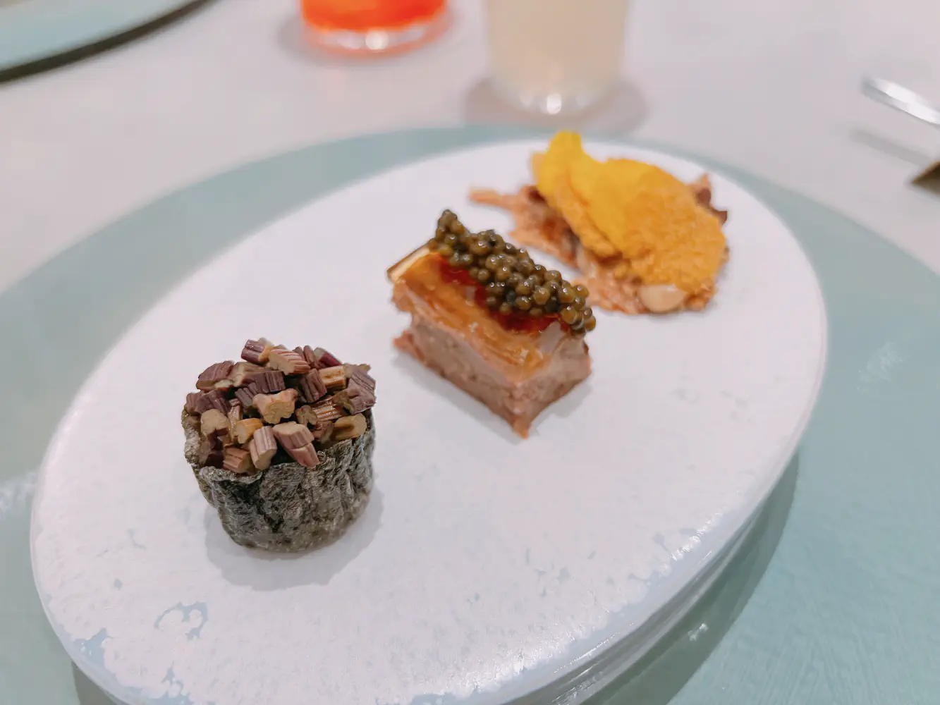- Pyeonyuk - came with Beef Shank, Tomato, and Golden Kaluga Caviar. This resembled refrigerated beef shank soup where the fat congeals a little, and you can slice it like a pate. The caviar added nice saltiness to it.