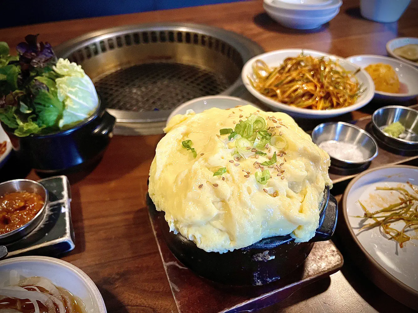 They also gave us a gigantic egg souffle. This was decent, though certainly not the best we’ve had at Korean BBQ places. Also, towards the bottom of this, there was leftover crunchy carbon, which gave a weird crunchy texture to the bottom of the egg souffle since it was cooked very thoroughly. It was not enjoyable.