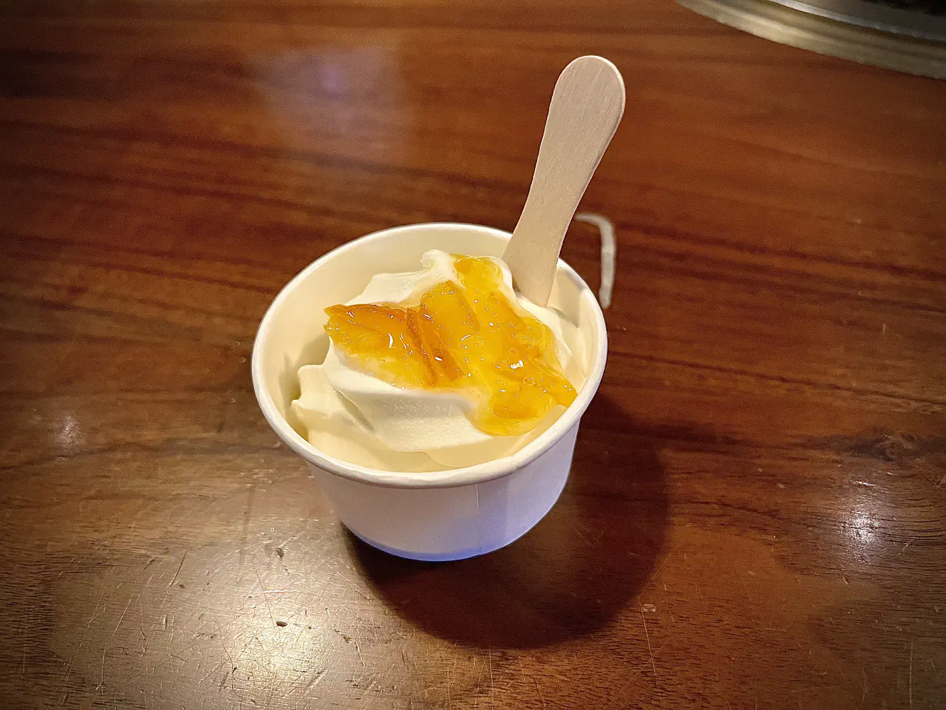 For dessert, they gave a soft serve with orange marmalade, and it tasted straightforward.