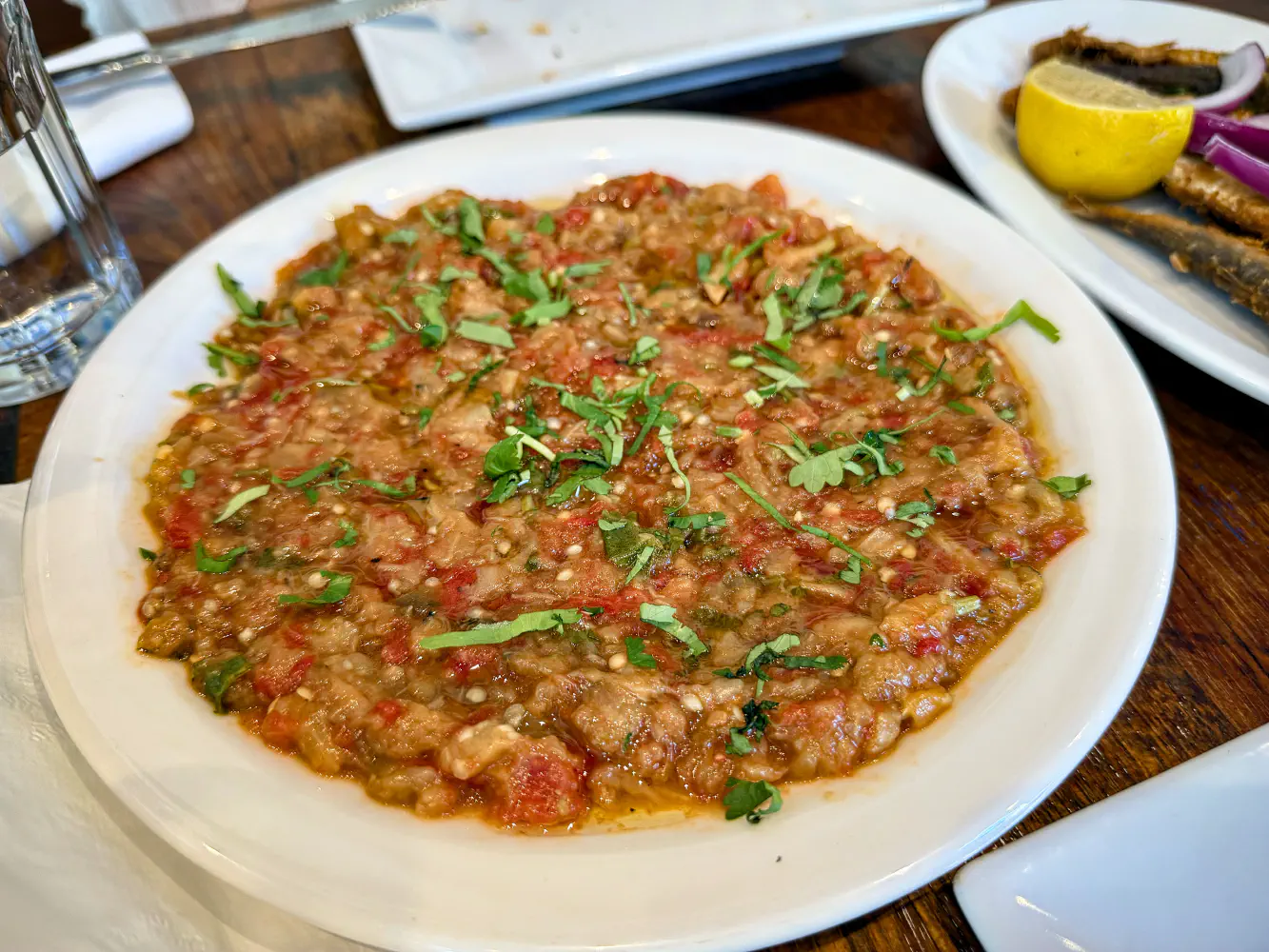 The complimentary garlic bread came with some olive oil already basted on. It was crispy and served as an excellent vessel for the roasted eggplant dip.