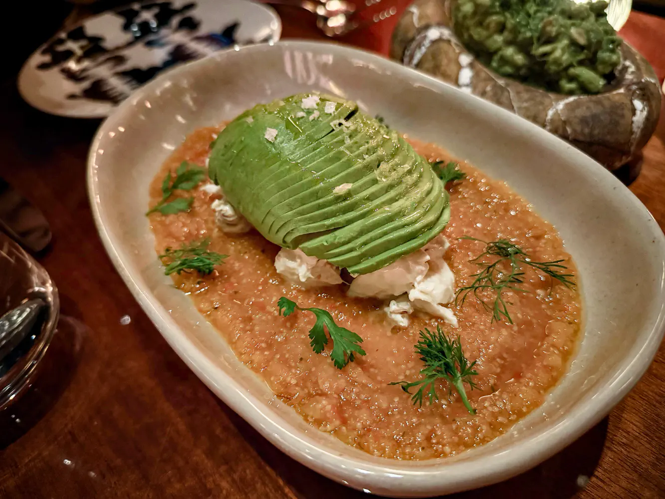 The Jumbo Lump Crab & Avocado ($28) came with charred gooseberry salsa. The crab definitely was plentiful, and the avocado was very fresh. The one surprise to this dish was the salsa. It had quite a bit of heat up front, but my partner really enjoyed the lump pieces of crab meat. The crab meat reminded me of what you’d get if you ordered lump crab meat from those Maryland crab cake delivery places.