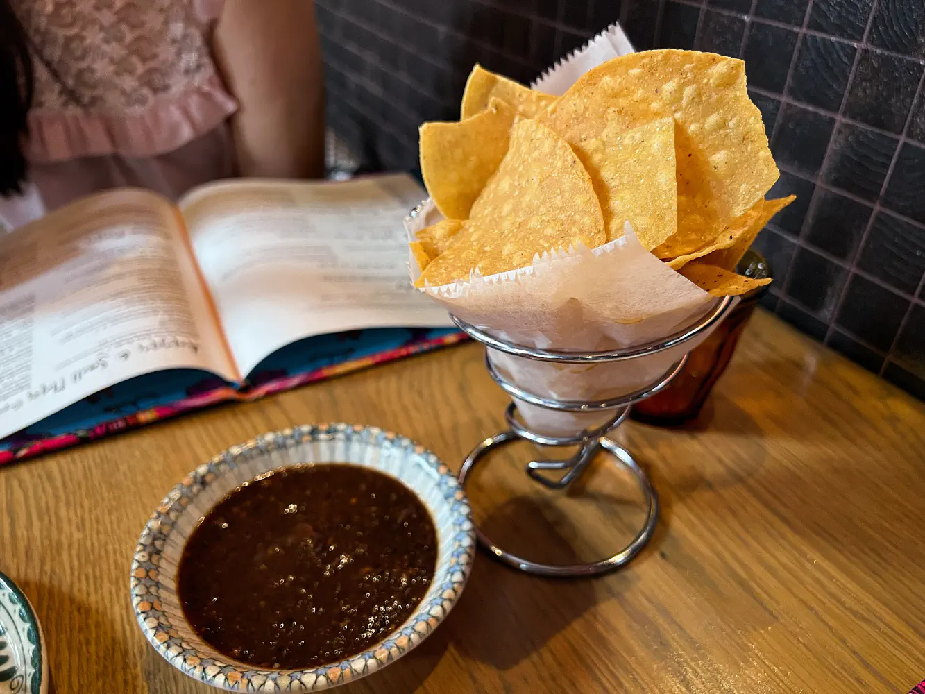The chips were in this toaster machine, and it seemed they just used tongs to take out the chips. The guacamole was a decent portion for 2 people, but for anyone more, you probably want to order more.