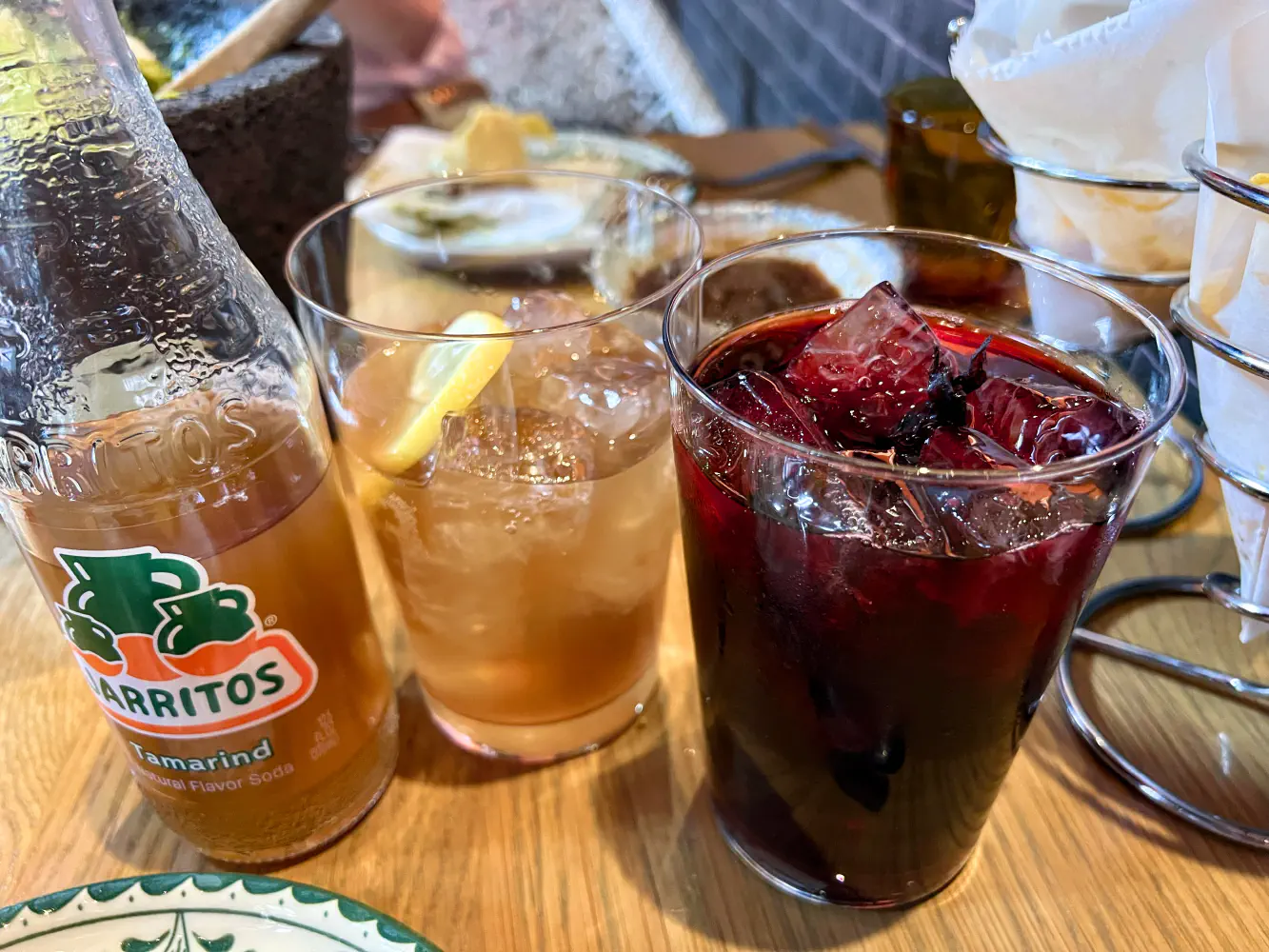 For drinks we got a Tamarind Jarritos Soda ($5 - left) and an Agua Fresca ($8 - right) of hibiscus. The hibiscus was pretty sweet, but once the ice melted a bit, it balanced it out.