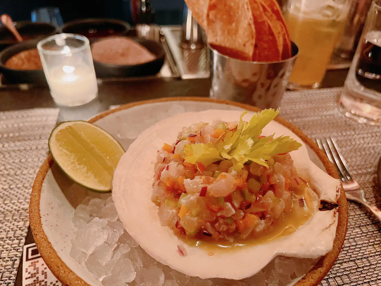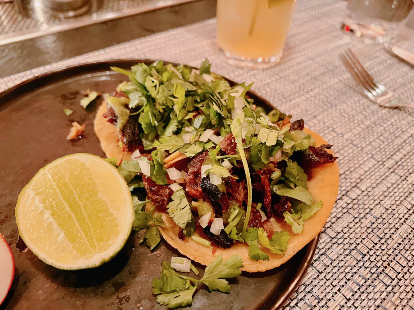 This was complimentary because I didn’t order a ceviche or appetizer for myself. The bartender helped out to make sure I had something to eat while my partner was eating the ceviche. The salsa negra reminded me of a spicy chipotle flavor salsa with the texture of a thick mole sauce.