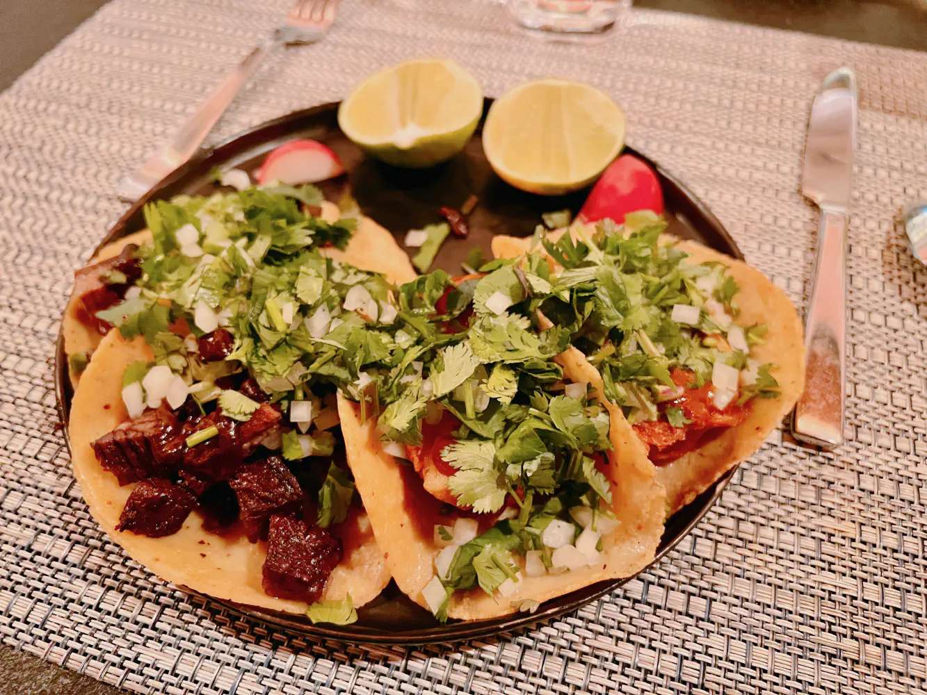 We were worried about portion sizes given historical reviews and the fact that there are only 2 tacos per order but they are heavy handed with the toppings which was wonderful.