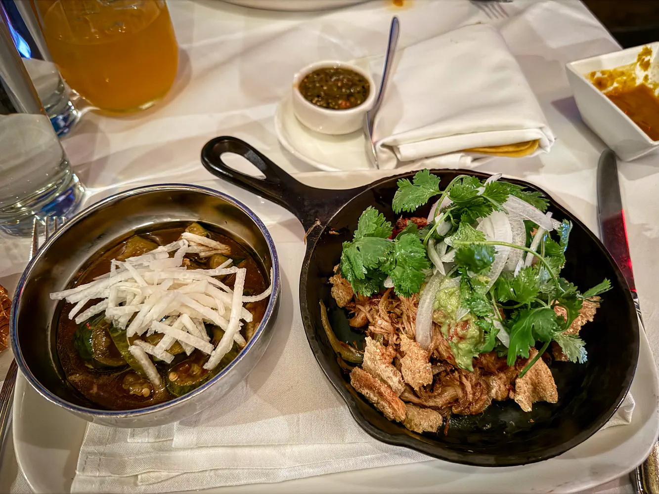 The Carnitas de Lechon ($38) came with tamarind glazed suckling pig carnitas, guacamole, chicharron, smashed cucumbers, and tortillas for tacos. The pork meat was very good, and it was good after making tacos with it. The cucumbers were a little different because it reminded me of the pickled cucumbers you’d find in Korean restaurants. Otherwise, I thought the overall entree was flavorful.