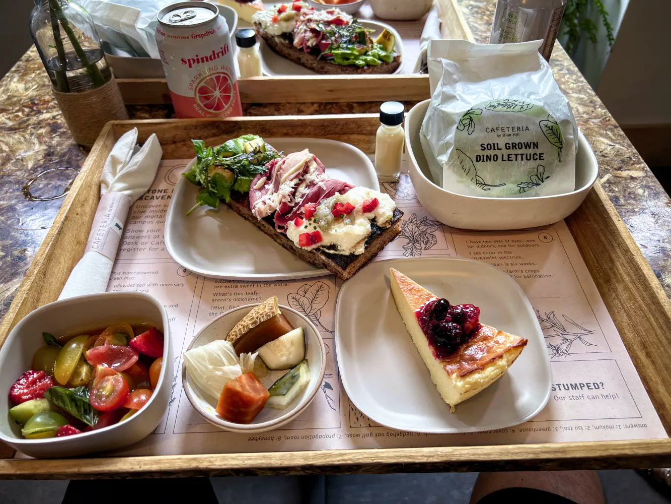 This is the lunch tray, which includes 1 choice from two flavors of Spindrift sparkling water.