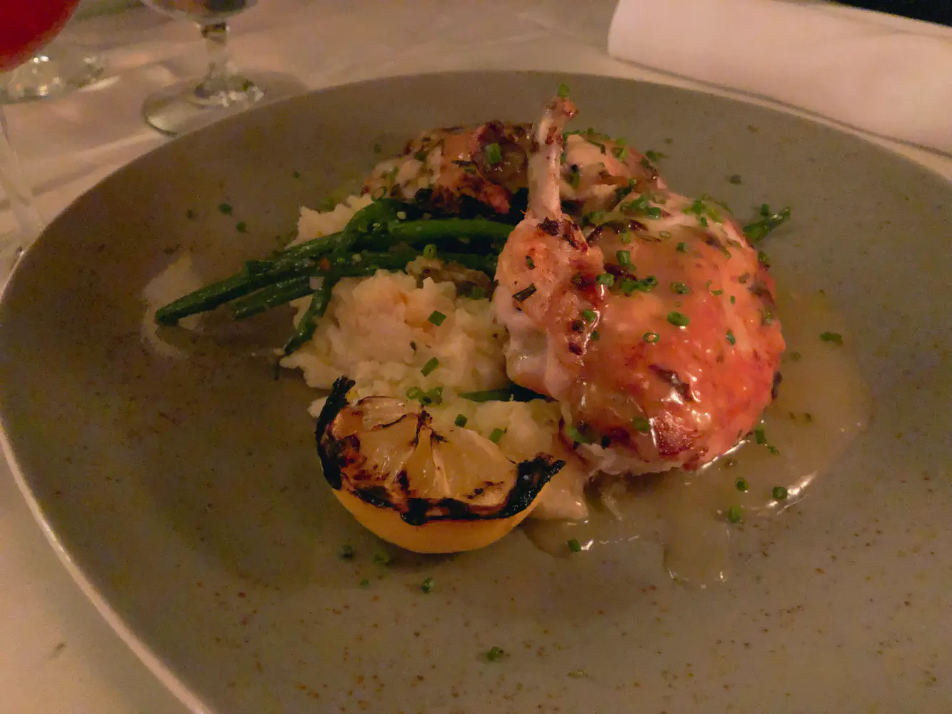 The organic Amish chicken is a half chicken with mashed Yukon gold potato, meyer lemon, thyme garlic, and pan juices. Surprisingly, this was pretty tasty, and it remidned me a lot of Marc Forgione’s chicken under the brick in a way. The dark meats of the chicken were juicy, but the white meats might have been slightly on the dry side. Still, the seasoning was quite good.