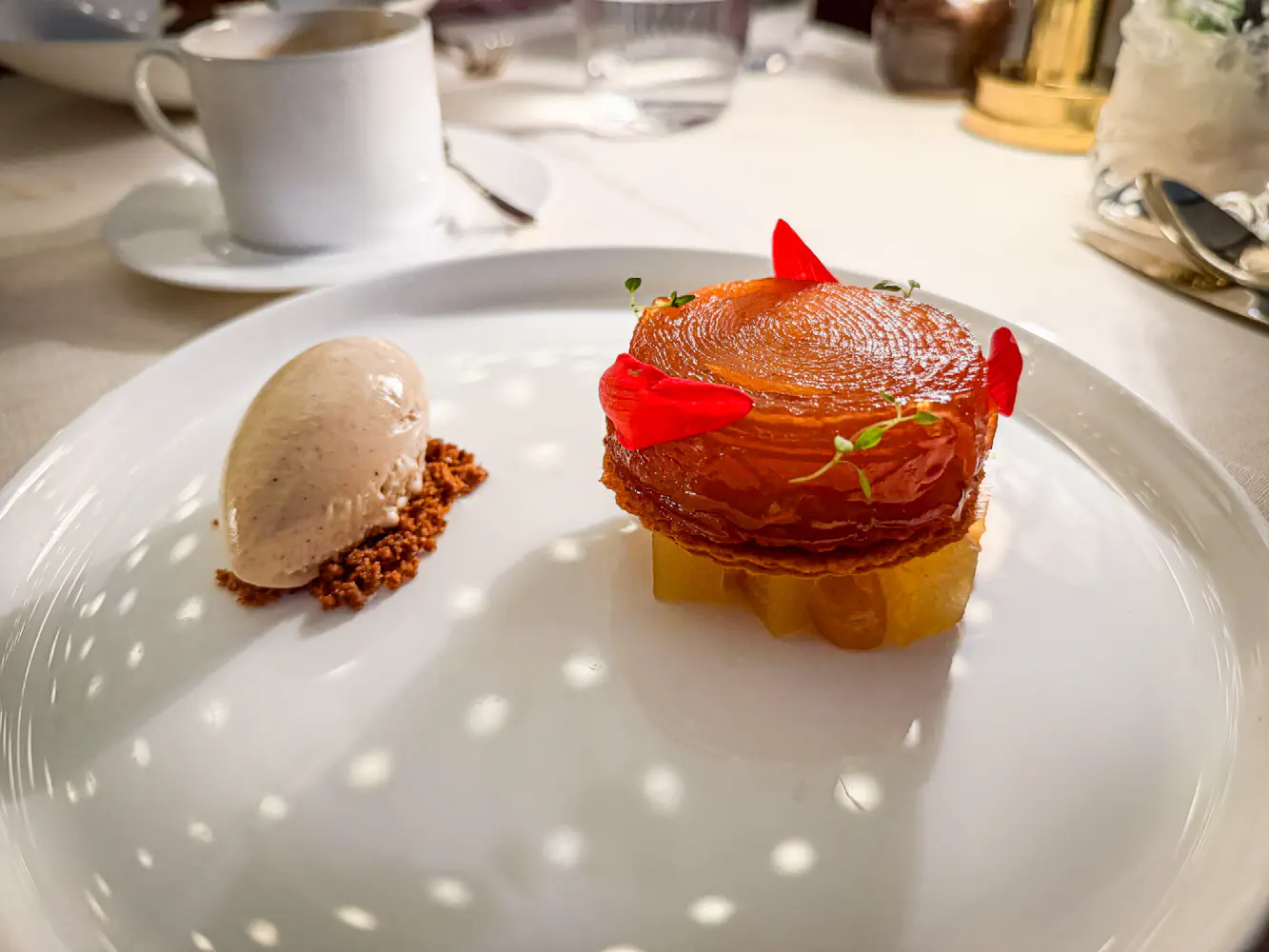 My partner got the the Apple Confit, which came with speculoos cookie, gavotte tuile, apple butter, cinnamon, and calvados ice cream. This basically tasted like an apple pie, so it wasn’t anything special.