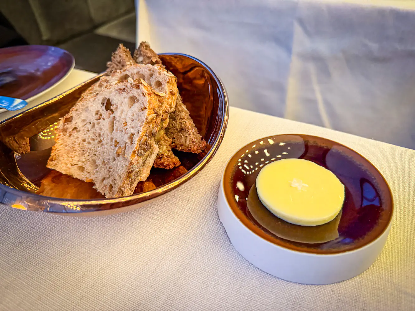 Four Twenty Five is a contemporary, elevated restaurant from Chef Chef Jean-Georges Vongerichten. This restaurant was open on Christmas Day, and it was on our list for a while. They offered a tasting menu which mostly resembled items off their normal menu. The day prior, I was very easily able to book reservations without any issues for 2 at 4 PM. We arrived about 15 minutes early, and they had us wait in the bar area while they prepared our table.