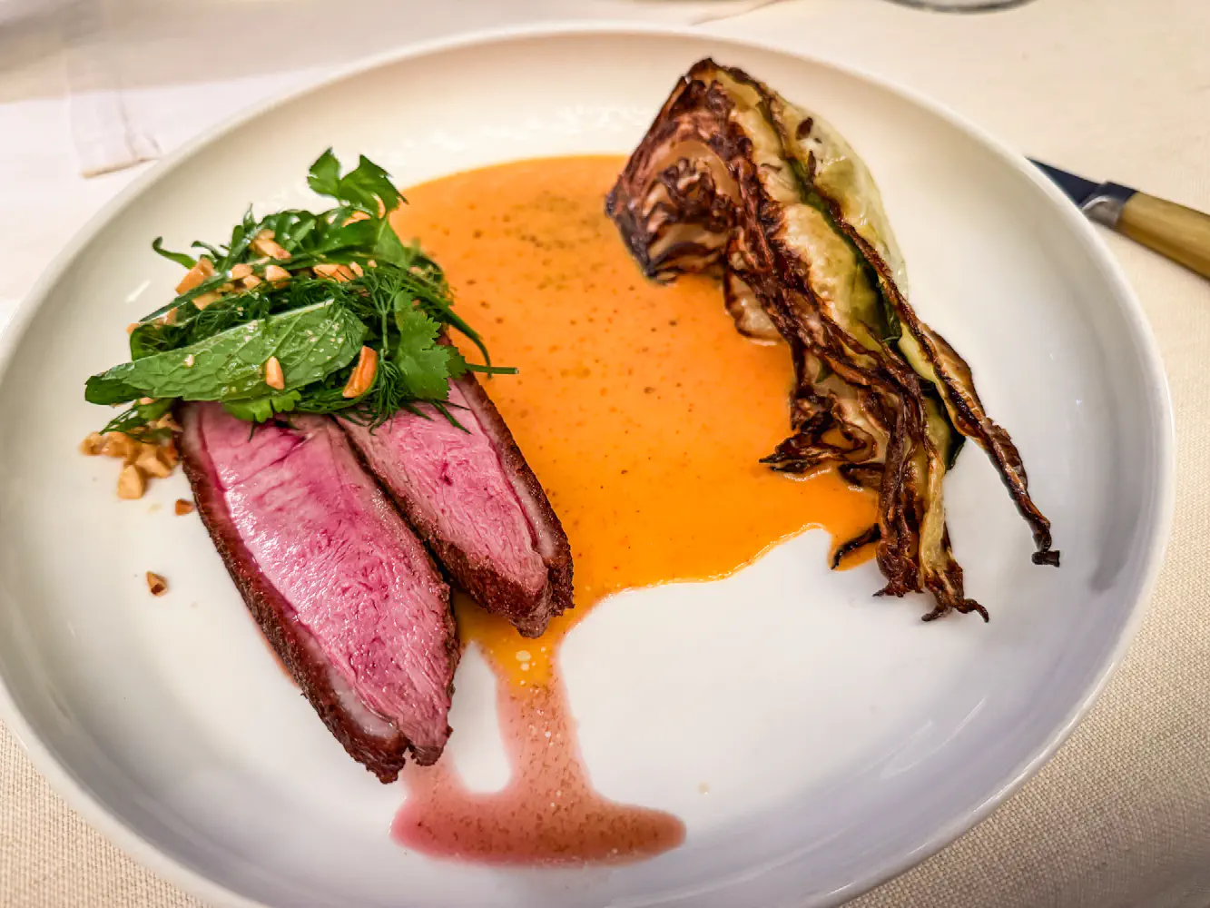 Near perfection for high end dining. Beautiful setting after you take the elegant staircase to the second floor. The service is near perfection. Our waitress was down to earth and knew the menu.