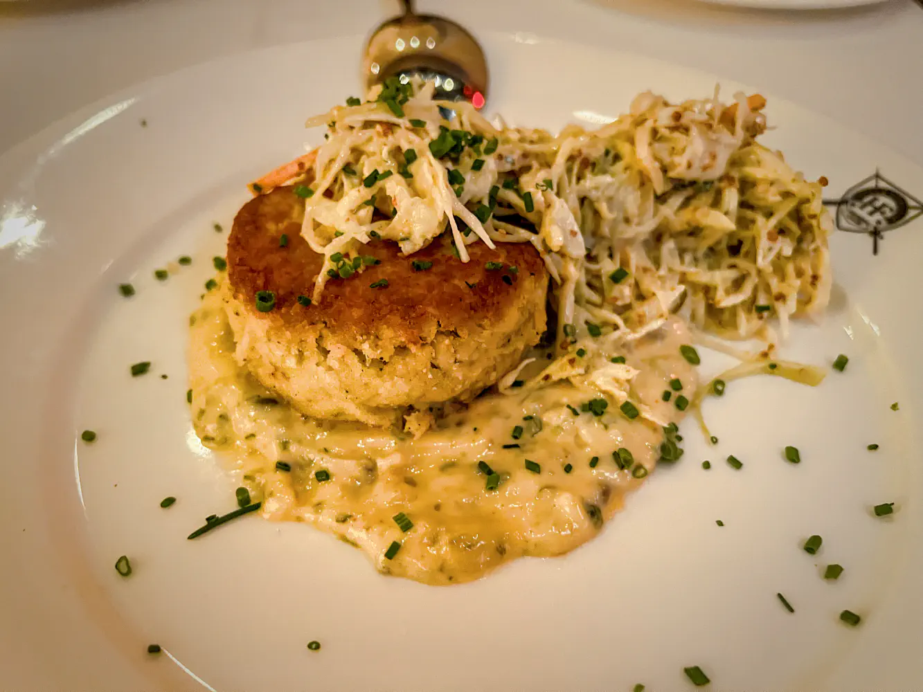 The Jumbo Lump Crab Cake ($28) came with apple slaw and remoulade. The cole slaw was pretty good. The crab cake was dense with a decent amount of minced crab meat. My partner actually enjoyed this, which has been rare.