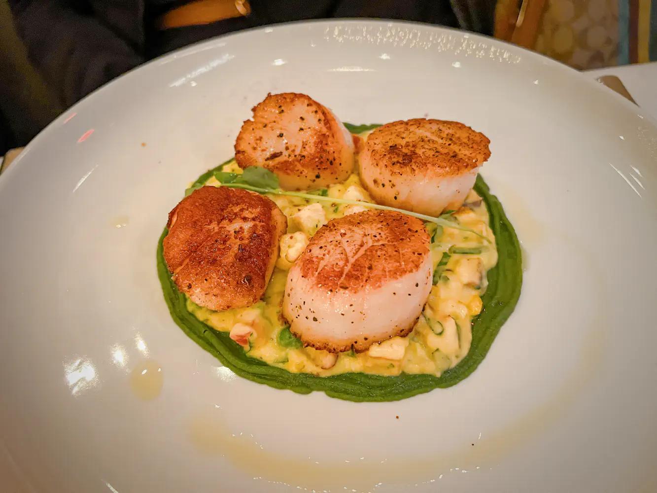 The Seared Scallops ($47) came with pea purée, grilled corn, bacon, potato, English peas, cippolini, and roasted garlic. The scallops were cooked perfectly, and surprisingly, my partner had to take 2 pieces home because they were full. The sauce medley that the scallops sat in was pretty good.