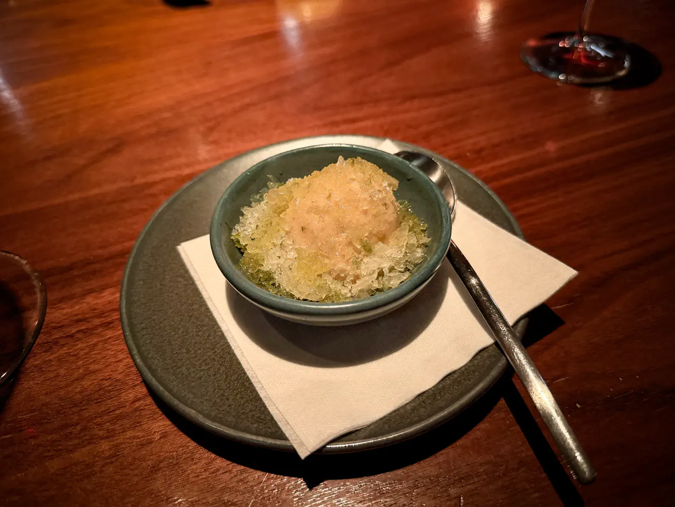 The RHF Crab Apple Sorbet came with mint and lemon. This granita was basically crushed ice with some nice, bright tree flavors to reset your palette.