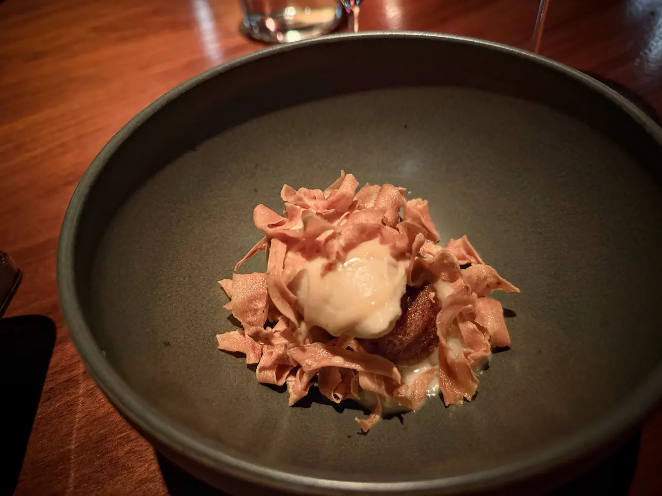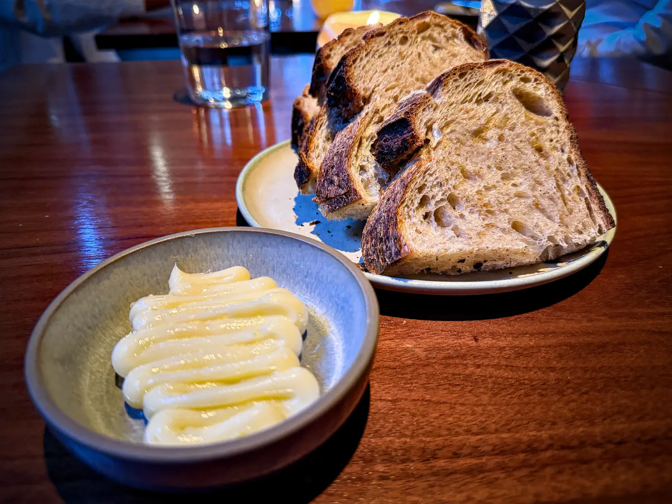 We swapped the monkfish for the duck, and absolutely do the same The meat was so juicy and perfectly fatty, sauces weren’t even necessary. The skin and that thin sliver of fat were insanely good. The wagyu also had that deep, primal beefiness which paired so well with the black garlic sauce. The sourdough felt like overkill tho, good but just too much carb.