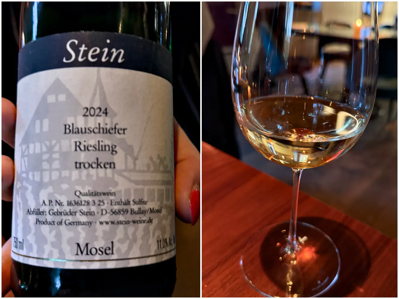 For the RHF Beans, this was the Stein, Riesling, ‘Blauschiefer’, Trocken from Mosel, Germany 2024. When they initially poured this and I took a sip, I thought the flavor was subtly sweet and unlike other German rieslings. It reminded me of liquids that run off of rocks. When I let this settle, it started to provide that very typical riesling flavor.