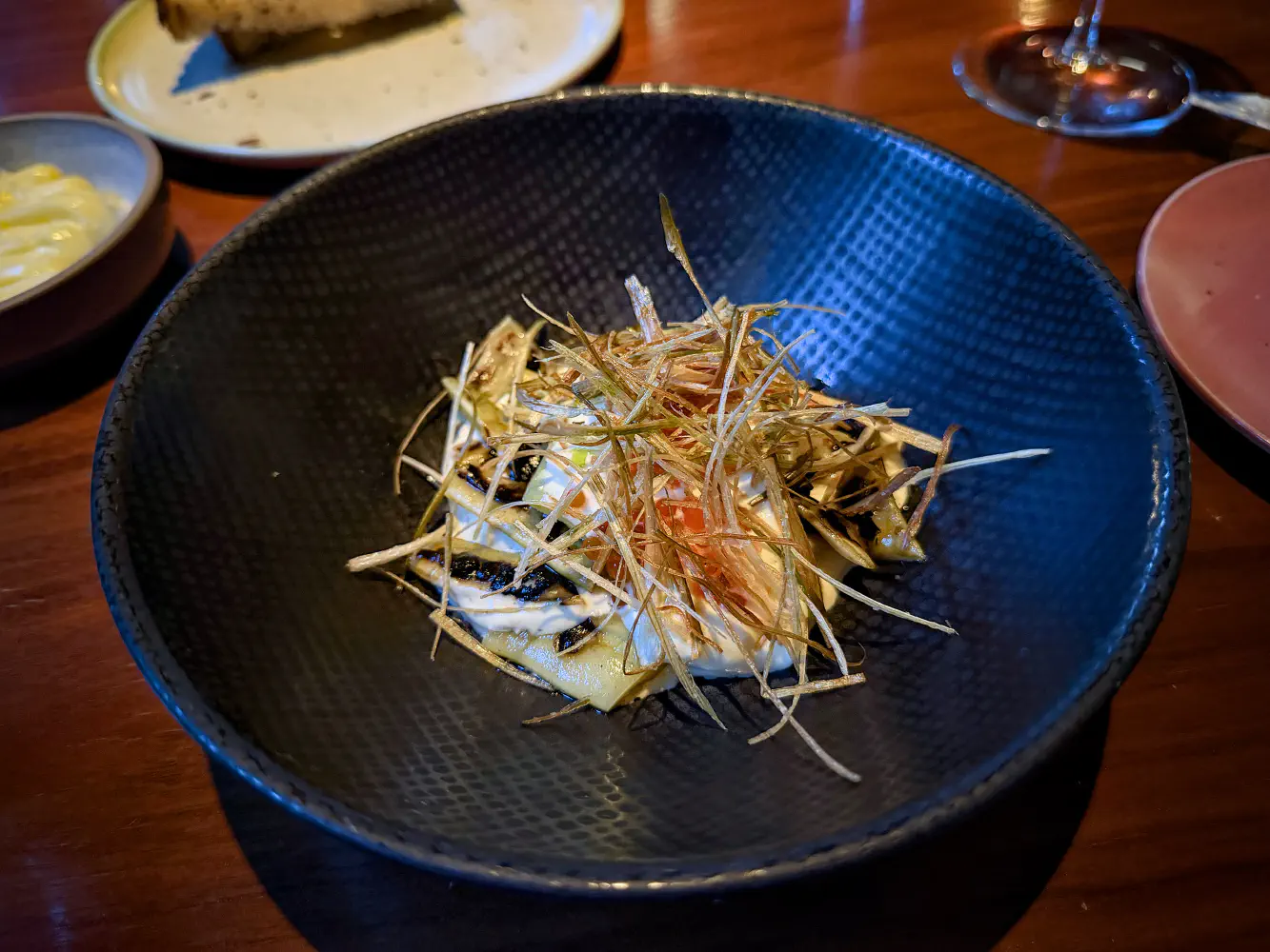 The Charred RHF Beans came with bottarga butter, rhf crispy leeks, smoked trout roe, and chive oil. This was an interesting dish in that I got a lot of farm vibes out of it, bringing that farm-to-table type of presentation. Overall, the dish tasted pretty good though it won’t necessarily wow you.