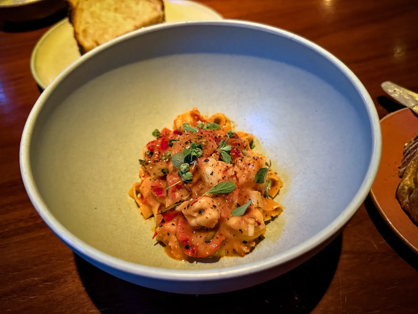 For the Shrimp Tagliatelle, this was the Pormenor, Rose from Duoro, Portugal 2022. This was surprisingly very red, but it did not taste like a red wine of course. This had some interesting flavors such that I probably wouldn’t get this to sip. However with the tagliatelle, it was surprisingly good. It was rich and hearty and pairs well with savory dishes.