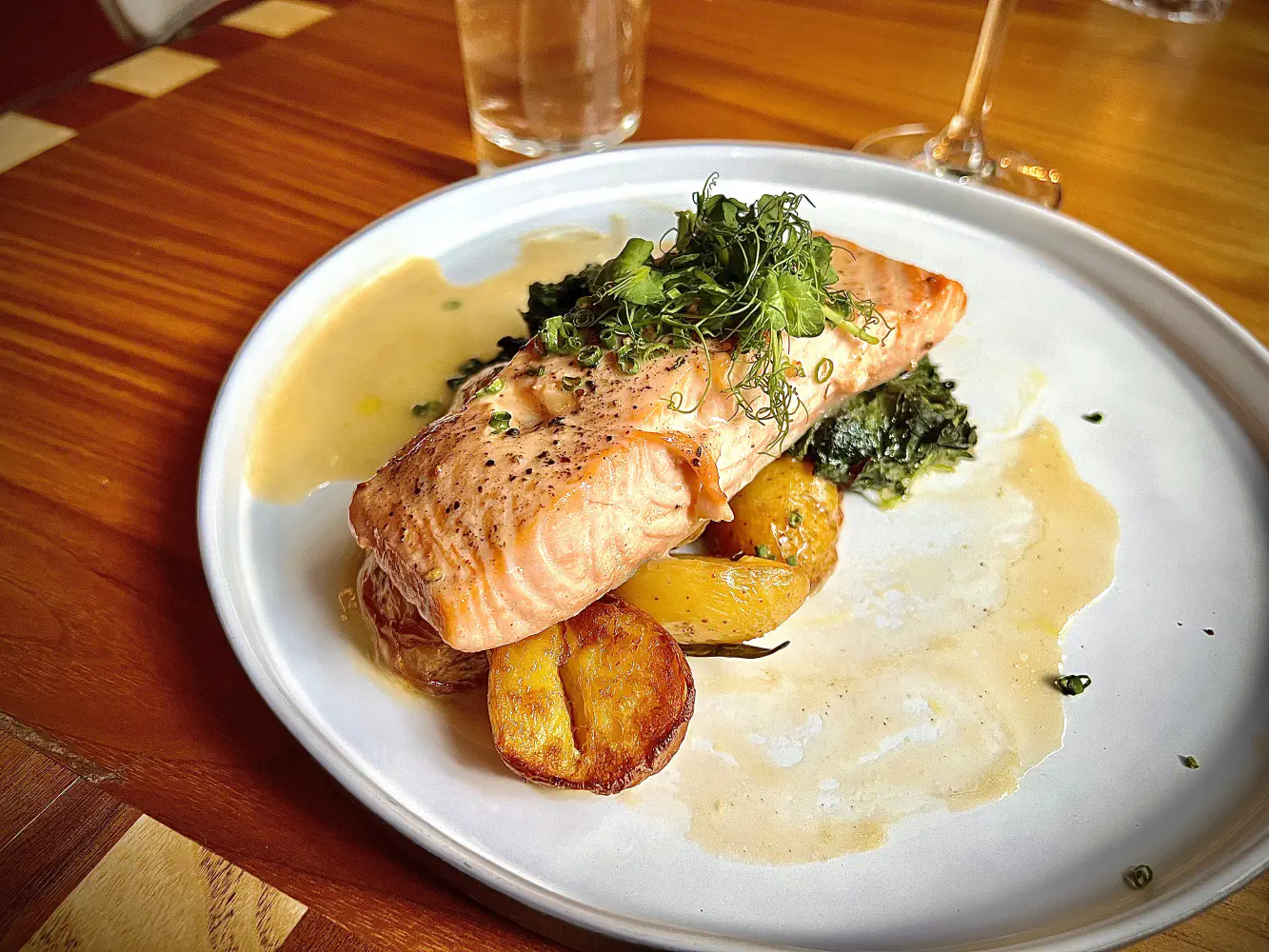 The Slow Cooked Salmon entree came with spinach, roasted potatoes, butter, lemon, and chives. The salmon was decent as expected, and this was generally a safe choice for an entree. You’d have to really screw this up.
