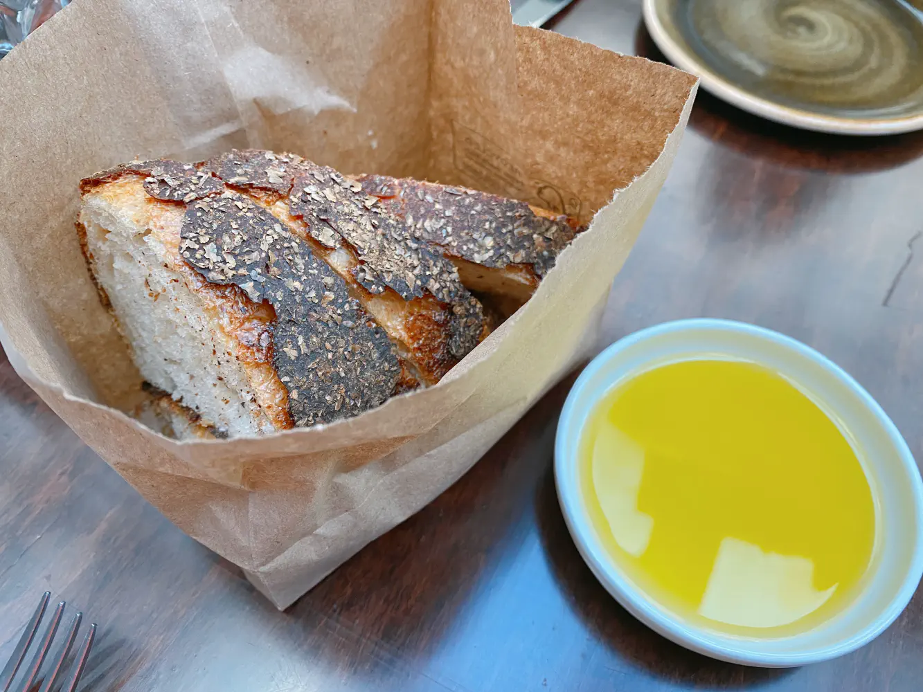 The bread was complimentary and came warm and toasted. The olive oil was served on the side, and the bread did an excellent job absorbing the oil.