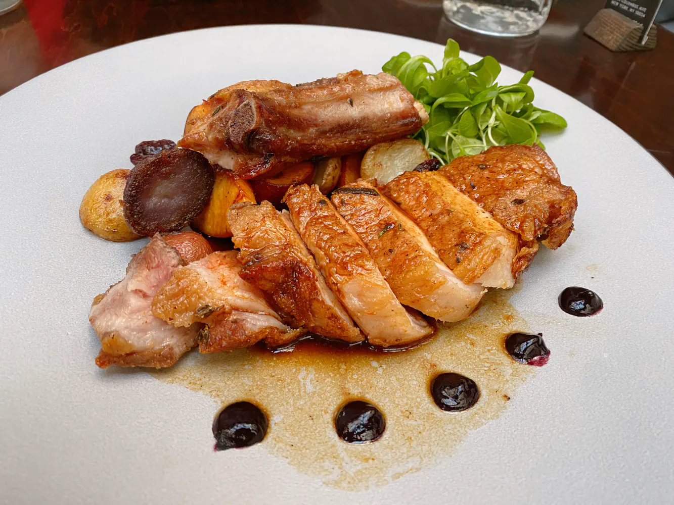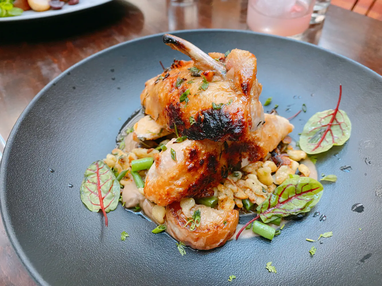 The free-range roasted chicken came with porini purée, herb spätzle, braised daikon, and wild mushrooms. The chicken was cooked beautifully. It was moist and tender. The juice was very flavorful and not gamey at all. I didn’t try any of the other garnishes since I was avoiding mushrooms, but my partner loved this.